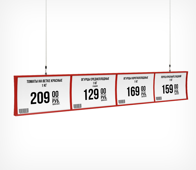 Прайсборд - держатель для нескольких крупных ценников формата А4, А5 или постеров, используется с заглушками PB-CAP. С помощью соединителей PB-CONNECTOR позволяет создать многоярусную конструкцию из прайсбордов, что применимо в торговых помещениях с высокими потолками. Возможность создания горизонтальной составной конструкции. Для подвешивания модели используются петли UNI-LOOP-P. Прайсборд можно установить на холодильную витрину или стеллаж с помощью магнитов MAGNET-PB. Модель удобна для "островных" выкладок, так как имеет возможность размещения ценников с обоих сторон. Быстрая и легкая смена информационного носителя, простая сборка и монтаж. Стандартные цвета - оранжевый, серый, зеленый, красный. Другой цвет под индивидуальный заказ. Размер изделия - 1000(1200)х212х33 мм.