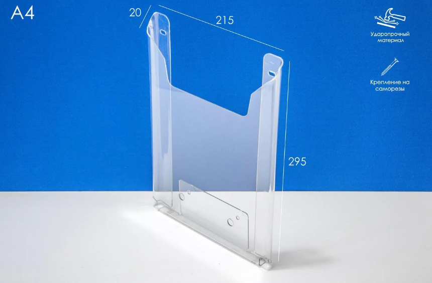 Карман буклетница настенная А4 вертикальный 1,5 мм ПЭТ