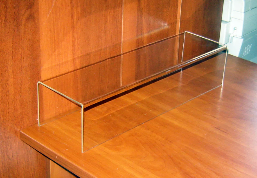 Настольная подставка П-образная под товар (обувь). Материал - оргстекло 3мм прозрачное. Ширина 450мм, глубина 130мм,высота 100мм.