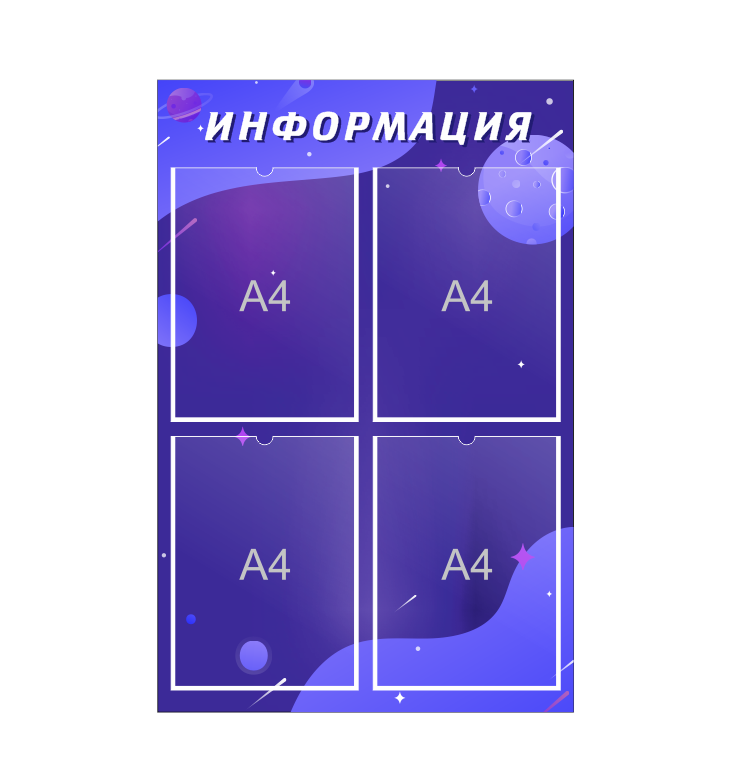 Плоский, стенд для кабинета астрономии "Информация" из ПВХ 3 мм с нанесением полноцветной печати на самоклеющейся пленке.