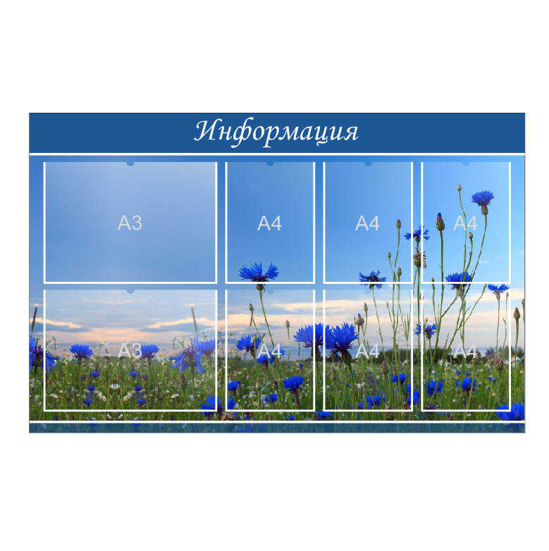 Плоский, стенд из ПВХ 4 мм, полноцветная печать на самоклеющейся пленке.
